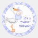 La conception d'un autocollant comporte une cigogne portant deux petits garçons douces au teint plus léger, blottis dans une couverture bleue. Il a les mots "C'est une douche "Twins" !" écrits en bleu. Cet autocollant coordonne les annonces, les invitations pour les douches pour bébés et les timbres-poste trouvés dans mon magasin. Parfait pour ajouter cette touche finale en scellant l'enveloppe.