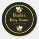 Sticker Rond Baby Shower Thème Abeille Noire et Jaune Blanche