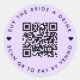 A simple custom lavender lilac pastel purple "Buy the Bride a Drink" Bachelorette Party QR code round sticker in a moderne minimalist style with a cute heart Detail. Le modèle peut être mis à jour en fonction de votre code QR et de votre texte personnalisé, pp. scan QR to pay by Venmo. #bachelorette #buythebrideadrink #QRcode #sticker