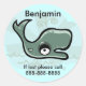 Badge d'identité de baleine pour enfants. Customisez avec vos propres informations. Conçu pour les enfants au parc d'attractions, aire de jeux, etc. S'ils se perdent quelqu'un saura un numéro à appeler pour vous joindre.