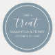 Un simple autocollant d'étiquette de remerciement avec une écriture calligraphique de mariage bleu poussiéreux, un modèle de prise de traitement minimaliste, un favori de fête d'autocollant créatif, pour bonbon buffet bar cookie mignon, un cercle minimaliste simple, un chic fantaisiste personnalisé, des étiquettes créatives stylées et élégantes, une réception simple basique propre, avec texte blanc fantaisiste amusant, pour fournitures de fête de mariage fiançailles