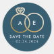 Sticker Rond Bagues Mariages d'or sur Bleu Enregistrer la date