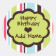 Personnalisable Joyeux Anniversaire Funky Stripe Sticker Vert et Brown Ajouter un nom