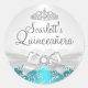 Sticker Rond Baguette de Quinceanera Turquoise Tiara & Bow