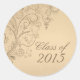 Cet autocollant rond de graduation a une belle tendance taupe marron tourbillon design avec beaucoup de fleurs blanches sur le côté gauche. Dans l'arrière - plan, il y a un design doux bronzé usé. Sur la droite, vous pouvez facilement customiser l'année de l'obtention du diplôme.