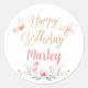 Sticker Rond Baisers à papillon et voeux d'anniversaire, toute