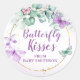 Sticker Rond Baisers à papillon Jardin Baby shower pourpre Favo