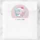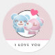 Je vous aime (ou votre propre texte) avec une jolie image de dessin animé d'un couple d'ours, l'ours est rose pastel avec un petit arc et elle embrasse la joue d'un ours bleu qui semble ravi. Un petit coeur rose flotte au-dessus de leur tête. Très mignon et kawaii. motif Arrière - plan est une couleur rose muet avec des pois blancs.