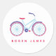 Faites un tour sur votre vélo avec cet autocollant rouge et bleu. Le texte est personnalisable. Une partie d'une collection de Parcel Studios.