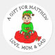 Une façon adorable de faire savoir à quelqu'un qui a le don est qui ! Un doux petit elfe mâle assis sur le sac de jouets de Noël Père Noël. Des autocollants pour les cadeaux de Noël.