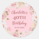 Anniversaire personnalisé autocollant étiquette avec fleurs vintages couleur rose vif. Parfait pour les faveurs de remercier les invités de votre fête d'anniversaire.