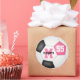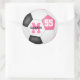 Ces stickers ronds de football de 3 pouces, mignons et sportifs, présentent un graphisme simple avec des panneaux roses, noirs et blancs - personnaliser avec le nom de l'athlète, monogramme et numéro de maillot - par katz_d_zynes