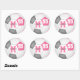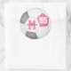 Ces stickers ronds de football de 3 pouces, mignons et sportifs pour les filles, présentent un graphique simple avec des panneaux roses, gris et blancs - personnaliser avec le nom de l'athlète, monogramme et numéro de maillot - par katz_d_zynes