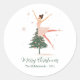 Le Nutcracker est le ballet bien-aimé du réveillon de Noël. Nous avons représenté ici la belle ballerine, Clara, la figure centrale de l'histoire en dansant devant le sapin de Noël. Évidemment, elle est magnifique en rose. Notre version est tirée d'une belle illustration rétro d'une aquarelle vintage. Nous l'avons représenté sur l'autocollant rond. Cependant, l'autocollant carré a aussi l'air super. "Joyeux Noël" est le salut sur cet autocollant, et il est modifiable. Assurez-vous de modifier le nom de famille et la date.