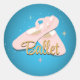Célébrez la joie de la danse de ballet avec cet autocollant n'importe quel âge, n'importe quelle occasion. Chaussures de ballet rose sur un arrière - plan bleu avec étoiles et étincelles. Les autocollants sont la touche finale parfaite pour les cartes, les emballages et les lettres.