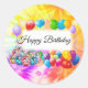 Sticker Rond Ballons colorés et feux d'artifice, Anniversaire