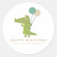 Crocodile mignon avec ballons Dessin personnalisé cadeau d'anniversaire Sticker classique rond