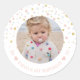 Cet autocollant d'anniversaire mignon or & rose de fille présente des confettis mignons avec un modèle photo. Un complément parfait aux faveurs de fête pour le baby shower ou l'anniversaire d'une fille. Les invitations et les fournitures de fête correspondants sont disponibles dans ma boutique BaraBomDesign.