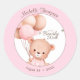Sticker Rond Ballons Ours Aquarelle Rose