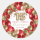 Cet élégant autocollant rond Quinceañera présente une arche de ballons de parties scintillant scintillante dans différentes nuances de rouge et d'or avec ballon d'or 15. Des banderoles et des confettis en or et en rouge complètent l'ambiance du parti. Parfait pour les invitations de fêtes ! Facile à customiser en cliquant sur "Personnaliser".
