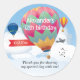 Montez, remontez et repartagez avec cet autocollant amusant avec des montgolfières flottant dans le ciel bleu devant un nuage blanc et moelleux. L'événement s'imprime sur le grand ballon coloré avec un avion qui vole derrière, en suivant une bannière rouge avec une date ou un autre texte imprimé dessus. Idéal pour les fêtes d'anniversaire ou les événements spéciaux de ballonnement à utiliser comme scellés d'enveloppe ou de scellement de sacs de faveur. Disponible avec les produits correspondants. com