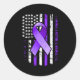 Sticker Rond Bande-ruban violet du cancer du drapeau américain