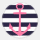 Sticker Rond Bandes nautiques avec ancrage fuchsia