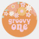 Plaques d'un 1er anniversaire d'inspiration rétro avec fleurs de style années 70 et polices et couleurs boho super.