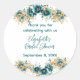 Belles autocollants de remerciement de baptême de mariage avec des fleurs de sarcelle et d'or réalisées à l'aquarelle. Tous les champs sont modifiables, vous pouvez donc entrer vos propres informations.