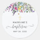 Joli fleur sauvage aquarelle et une croix d'or dessus cet autocollant rond baptism. Les fleurs sont dessinées à la main et elles ont un joli regard de prairie que tout le monde aime. Faux aquarelle texture papier les rend vraiment remarquables. La typographie de caligraphie ajoute au style génial. Voir aussi nos points de coordination.