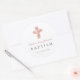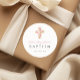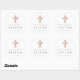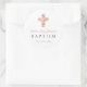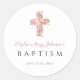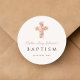 Autocollant rond classique baptême élégant religieux croix florale rose personnalisé.