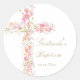 Sticker Rond Baptême fleurs roses croisent bébé fille