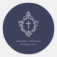 Sticker Rond Baptême Garçon Marine Bleu Faux Argent Crest Vinta