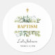 Cette image affiche un chevalet de baptême magnifiquement conçu. Le haut de la conception présente un symbole croisé simple et élégant, qui témoigne de la signification chrétienne de l'événement. En contrebas de la croix se trouve un luxuriant aménagement de verdure aquarelle, avec des nuances de feuilles verts qui apportent une touche fraîche et naturelle à la décoration. Le texte est soigneusement agencé avec un mélange de polices classiques et modernes, mettant l'accent sur une cérémonie de baptême élégante. Le nom de l'enfant figure en bonne place, indiquant l'enfant à baptiser.