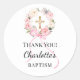 Sticker Rond Baptism pink girl florals wreath cross thank you