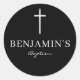 Sticker Rond BAPTISM SEAL moderne mince gris argent croix noir