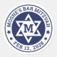 sticker Bar mitzvah avec une étoile blanche de David avec l'initiale monogramme du garçon, et nom et date autour de l'étoile. Les couleurs par défaut sont le blanc et le bleu foncé mais toutes les couleurs sont entièrement personnalisables dans l'outil de conception.