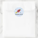 Un design amusant avec une fusée rouge qui explose sur la lune. Un arrière - plan bleu doux avec des petites étoiles noires. le dicton peut être changé si on le souhaite.