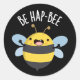 Sticker Rond Be Hap-bee Funny Bee Pun Dark BG