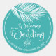 Sticker Rond Beach Palm Leaf Turqoise Mariage Bienvenue