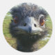 Image photographique en couleur complète d'une UEM, ou d'un grand oiseau d'autruche, avec des détails montrant plumes et plumage, et ses yeux bruns dorés intensément concentré sur sa proie - le photographe!