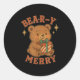 Sticker Rond Beary Merry Cute Retro Christmas Bear Gift Box Vin