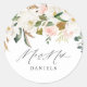 Sticker Rond Beau Blush & White Floral Mr & Mrs Mariage
