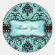 Elégant aqua bleu et noir Vintage Damask merci les autocollants de mariage.