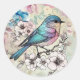 Belles Aquarelles de Printemps Autocollants Ronds Classiques à Motif Floral et Oiseau