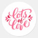 Diffusez les bonnes vibes avec notre autocollant "Lots of Love" ! Éclairage avec positivité et conçu avec la calligraphie de brosse originale. Parfait pour les cadeaux ou même l'envoi, cet autocollant est un joyeux ajout à votre collection.