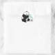Un Ours de Panda tenant des feuilles de bambou avec le symbole chinois de beauté dans le coin inférieur droit.