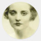 Photographie vintage dans les tons pâles d'une beauté aux cheveux courts avec un regard sérieux