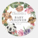 Sticker en Merci de Baby shower à thème Cute Safari Animal Boy Wild One - Design propose quatre adorables animaux de la jungle d'aquarelle (girafe, singe, ours de panda et meerkat), décorés de fleurs tropicales vibrantes et de verdure botanique. Personnalisez simplement en customisant le nom et le message de remerciement.