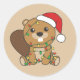 Sticker Rond Beaver Noël Animaux d'hiver Beaver Classic Rou